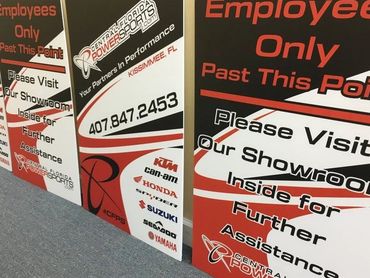 Our services include everything from trade show signage and promotional signs to directional signs, safety signage, and real estate signs—all designed to communicate clearly and leave a lasting impression. We also specialize in window signage, wall signs, hanging signs, and A-frame signs, making sure your message gets seen in the right place, at the right time.